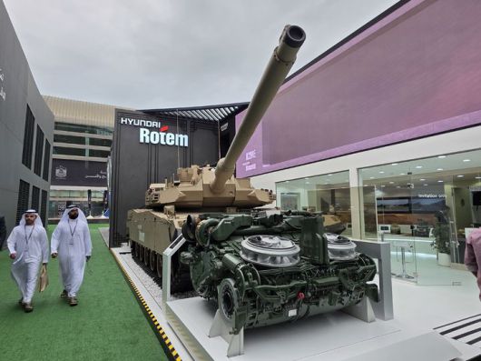 [창원=뉴시스] 강경국 기자 = UAE 아부다비에서 IDEX 2025 국제방산전시회가 지난 17일(현지시각)부터 21일까지 열리는 가운데 현대로템 야외부스에 중동형 K2전차(K2ME)와 국산파워팩이 전시돼 있다. (사진=SNT다이내믹스 제공). 2025.02.18. photo@newsis.com *재판매 및 DB 금지 |