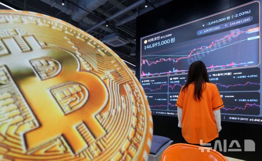 [서울=뉴시스] 김혜진 기자 = (기사와 무관한 사진) 지난달 29일 서울 강남구 빗썸 라운지 전광판에 비트코인 시세가 표시되고 있다. 2025.05.29. jini@newsis.com |