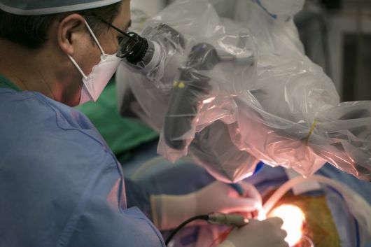 최재영 세브란스병원 이비인후과 교수가 인공와우 수술을 하고 있다. [세브란스병원 제공] |