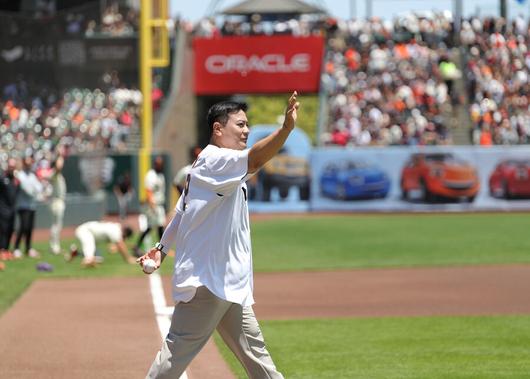 한화 이글스 영구결번 레전드이자 현재 KBSN스포츠 야구해설위원으로 활동 중인 김태균이 지난 23일(한국시간) 미국 캘리포니아주 샌프란시스코에 위치한 오라클파크에서 시구자로 나서며 글로벌 팬들의 뜨거운 환호를 받았다.