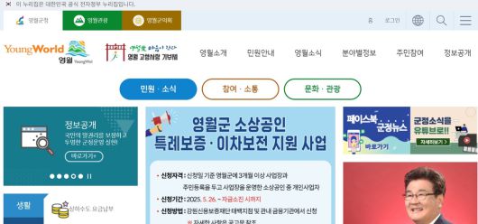 영월군 인터넷 홈페이지 초기화면 갈무리. |