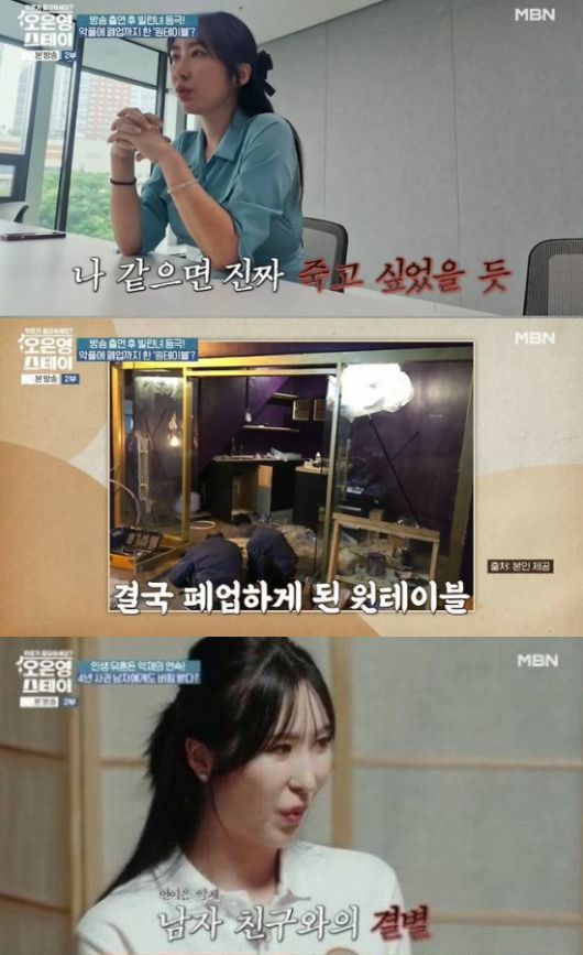 당시 헤어진 남자친구는 다른 사람과 결혼했고, 이후 원테이블은 극도의 배신감과 충격에 점점 술에 의지하게 되며 혼자되기를 선택했다. 그렇게 세상과 단절시키며 1년을 보냈다고 고백해 안타까움을 자아냈다.
