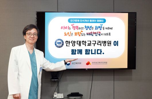 [라포르시안] 한양대학교구리병원 이승환 병원장이 심화되고 있는 인구 감소와 저출산 문제 등 인구문제에 대한 심각성을 알리고 시민들의 인식 개선을 위한 '인구문제인식개선 릴레이 캠페인'에 동참했다.