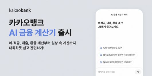 카카오뱅크가 24일 'AI(인공지능) 금융 계산기' 서비스를 출시했다. 지난달 'AI 검색'에 이어 계산기까지 선보이면서 AI 혁신을 이어간다.