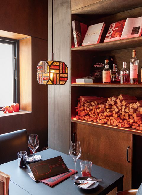 이처럼 한국적인 맛과 멋은 로기의 차별화 포인트다. 로기의 메뉴 중에는 한식 장과 기름을 베이스로 사용하는 경우가 많다. 기순도 명인이 담근 고추장으로 만든 고추장 비스크 소스를 곁들인 새우 구이가 대표적이다. 이외에도 광이원 장인이 6년간 숙성한 간장을 베이스로 만든 브라운버터소스, 국내산 참기름과 들기름 등을 사용한다. 음식뿐만이 아니다. 레스토랑에서 사용하는 접시나 도구, 공간을 장식하는 오브제와 조명, 의자 등 가구도 대부분 한국 작가들의 작품이거나 작가들과 협업해 주문 제작한 것들이다. 이런 요소들은 로기에서의 경험을 더욱 특별하게 만들어 준다. 새우 파스타 역시 로기에서만 맛볼 수 있는 특별한 메뉴 중 하나다. 발효시킨 고추·마늘 베이스에 훈연 버터 에멀전을 섞어 소스를 만들었고, 훈연향을 입힌 레지아노 치즈와 숯에 구운 새우를 올리고 새우 머리에서 뽑은 비스크 오일로 마무리를 했다. 박 셰프는 “소스는 고추장 맛은 아니지만 고추장에서 영감을 얻어서 조금 양식적으로 풀어냈다”고 설명했다. 새우 파스타는 맵지 않지만 약간의 자극을 주는 부드러운 소스와 숯향을 머금은 두툼한 새우가 고소하게 입안을 감싸 자꾸 손이 가게 만든다.