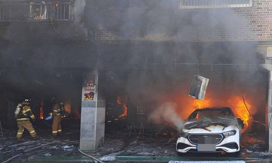 불은 35분여만에 진화됐지만 원룸 주차장 바로 위층에 있던 주민(40대·여)이 전신에 화상을 입어 소방헬기를 통해 전문 치료병원으로 이송됐다. 안타깝게도 주민은 치료도중 사망했다.