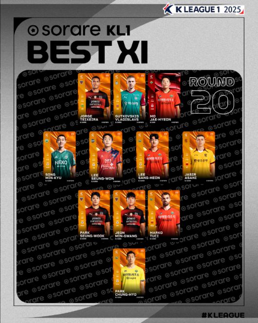 K리그1 20라운드 베스트11로는 모재현, 조르지(포항), 구텍(대전)이 최고의 공격수로, 송민규(전북) 이승원(김천) 이상헌(강원), 아사니(광주)가 최고의 미드필더로 선정됐다. 박승욱 전민광(이상 포항), 강투지(강원)가 최고의 수비수로, 박청효(강원)가 최고의 골키퍼로 이름을 올렸다. MVP와 베스트11에 4명을 배출한 강원은 20라운드 베스트팀에도 선정되는 기쁨을 누렸다.