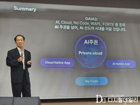 박 회장은 가이아 핵심을 프라이빗 클라우드 구축에서 찾았다. 그는 “AI 주권은 핵무기만큼 중요한 국가·기업 경쟁력”이라며 “데이터가 아마존으로 가버리면서 AI 주권을 뺏기고 있다”고 지적했다. 그는 “전 세계적으로 프라이빗 클라우드를 완벽하게 지원하는 회사는 없다”며 “미국 기업들도 프라이빗 클라우드를 구축하고 싶어하지만 현실적으로 쉽지 않다”고 설명했다.