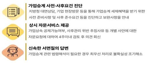 (세종=연합뉴스) 송정은 기자 = 국세청은 가업승계를 희망하는 기업을 위한 '4기 가업승계 세무컨설팅' 대상자를 모집한다고 24일 밝혔다.