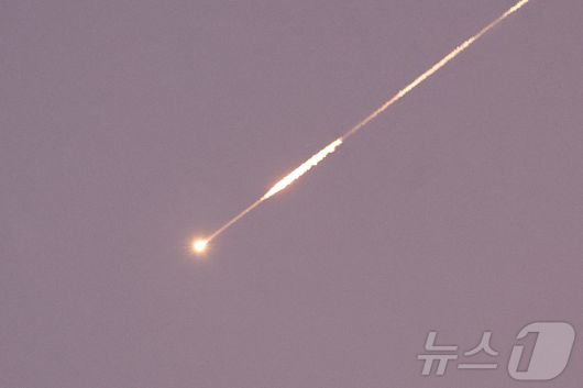 (투바스 로이터=뉴스1) 권영미 기자 = 24일(현지시간) 이란에서 이스라엘로 발사된 미사일이 이스라엘이 점령한 요르단강 서안지구의 투바스에서 관측됐다. 2025.06,24. ⓒ 로이터=뉴스1 Copyright ⓒ 뉴스1. All rights reserved. 무단 전재 및 재배포, AI학습 이용 금지.