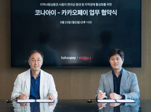 코나아이가 카카오페이와 전략적 업무 협약을 맺고 지역사랑상품권과 간편결제를 연계한 디지털 금융 혁신과 지역경제 활성화를 위한 업무협약을 체결했다고 24일 밝혔다.