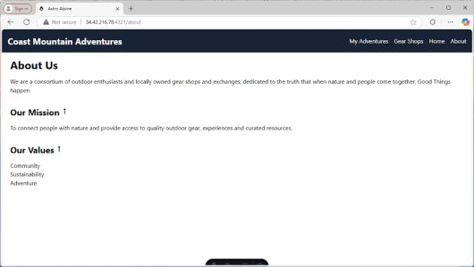 이제부터 ‘Coast Mountain Adventures’라는 가상의 웹 애플리케이션을 구축할 것이다. 앱은 3개의 페이지로 구성되며, 이를 통해 3개의 개발 계층을 살펴본다.