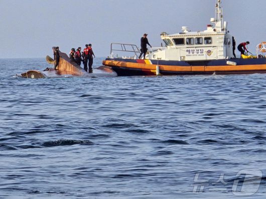 전남 신안군 가거도 북동방 해상에서 33톤급 근해통발 어선이 전복돼 목포해경이 구조 작업을 하고 있다. (목포해경 제공) ⓒ News1 이승현 기자 |