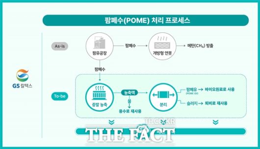 GS칼텍스는 인도네시아 최초로 팜폐수 증발 농축 처리시설을 도입해 팜폐수 부패를 억제함으로써 메탄 발생을 줄이고, 팜폐수를 재활용해 팜폐유(POME Oil)를 회수할 계획이다. 팜폐유는 지속가능항공유(SAF) 등 바이오연료에 활용할 수 있다. 처리 과정 중 함께 회수되는 물과 슬러지(침전물)는 팜농장 용수와 퇴비로 재사용한다.