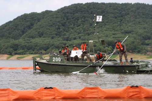 (서울=연합뉴스) 김지헌 기자 = 국방부는 한국환경공단과 함께 24일 강원도 인제 소양호 일원에서 수질오염 방제 훈련을 실시했다고 밝혔다.