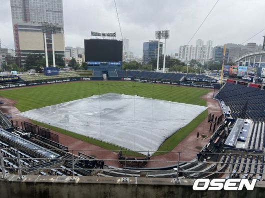 그러나 현 시점에서는 경기가 열리지 못할 가능성이 높다. 창원 및 경남 지역에는 새벽부터 빗줄기가 뿌렸다. 이미 대형 방수포가 덮여져 있지만 빗줄기의 양은 줄어들지 않고 있다. 그라운드 곳곳에 물웅덩이가 생겼다. 비로 그라운드가 흠뻑 적셔진 상황이다.