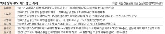 역대 정부의 배드뱅크를 살펴보면, 2003년 노무현 정부는 신용카드 사태를 극복하기 위해 2004년과 2005년 각각 한마음금융·희망모아를 내놨다. 2008년 집권한 이명박 전 대통령은 대선 후보 때 ‘720만 신용 대사면’을 약속했다. 저신용자의 채무 중 이자를 감면해주고, 신용불량자 연체 기록을 말소하는 것이 핵심이었다. 박근혜 정부는 2013년 18조원 규모의 ‘국민행복기금’을 만들어, 빚을 최대 50%(기초수급자는 최대 70%)까지 줄여줬다. 문재인 정부는 장기 소액 연체자의 채무를 100% 탕감하는 방안을 추진했다. 지원 대상은 1000만원 이하의 빚을 10년 이상 연체 중인 개인 차주로, 대상자가 159만명(채무 6조2000억원)가량일 것으로 추산했다. 윤석열 정부도 ‘새출발기금’을 조성해 코로나19 피해 소상공인의 채무를 감면해줬다.