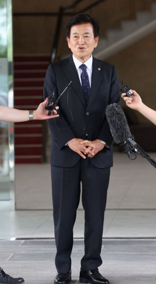 정동영 통일부 장관 후보자가 24일 서울 종로구 남북관계관리단에 마련된 인사청문회 준비사무실로 들어서며 취재진의 질문에 답하고 있다. 2025.6.24 연합뉴스 |
