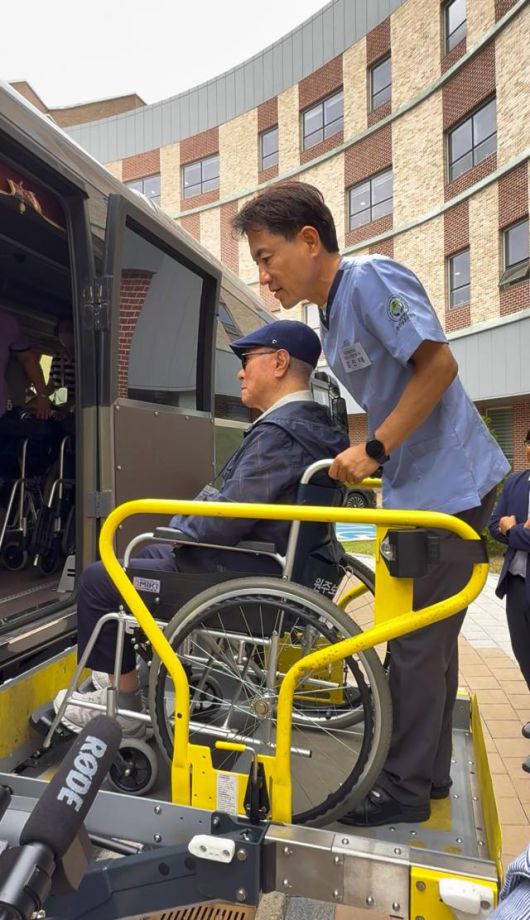 어르신들의 현장학습(횡성숲체험원) 이동을 위한 휠체어 리프트 버스 탑승을 도운 뒤, 김 지사는 “호국보훈의 달을 맞아 이곳 보훈요양 유공자 어르신들을 뵙고 인사드릴 수 있어 감사한 마음”이라며 “도는 배우자에게 참전 수당이 승계될 수 있도록 중앙정부에 공식 건의할 계획”임을 밝혔다.