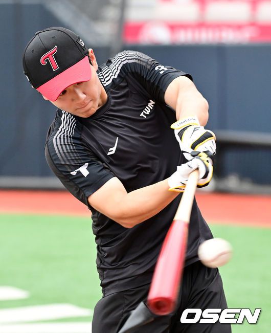 [OSEN=수원, 김성락 기자] 24일 오후 수원 KT위즈파크에서 2025 신한 SOL Bank KBO리그 KT 위즈와 LG 트윈스의 경기가 열렸다. KT는 헤이수스, 엘지는 치리노스를 선발투수로 내세웠다 경기 시작에 앞서 LG 최원영이 타격 훈련을 하고 있다. 2025.06.24 / ksl0919@osen.co.kr
