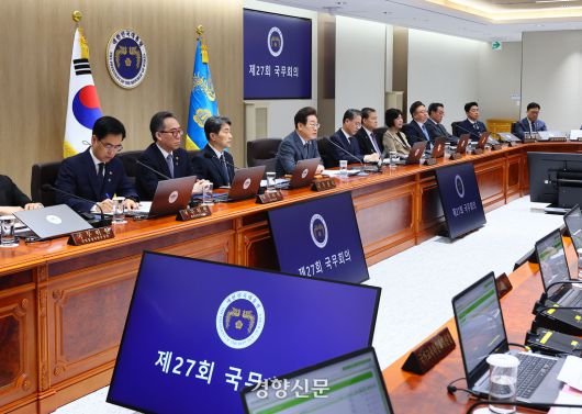 이재명 대통령이 24일 용산 대통령실 청사에서 열린 국무회의에서 발언하고 있다.대통령실사진기자단 |