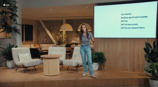 미라 무라티 오픈AI 최고기술책임자(CTO)가 13일(현지 시각) 생중계를 통해 GPT-4o를 공개하고 있다. / 오픈AI 라이브 스트림 캡처 |