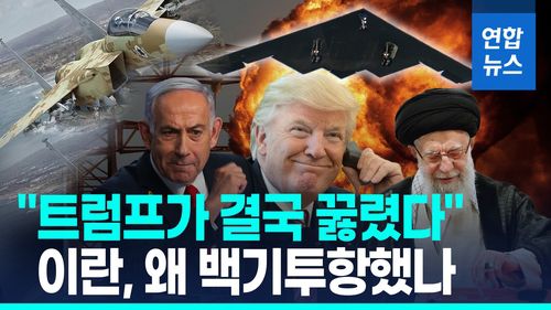(서울=연합뉴스) 좀처럼 끝날 것 같지 않았던 이스라엘과 이란이 23일(현지시간) 전격으로 휴전하기로 한 배경에는 무엇보다도 도널드 트럼프 미국 대통령의 강권이 작용한 것으로 보입니다.