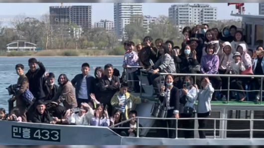북한 인공기가 걸린 이 유람선에는 일반 시민으로 추정되는 80여 명의 남녀노소가 탑승해 중국 풍경을 관람하고, 중국인을 향해 손을 흔드는 모습도 포착됐다.