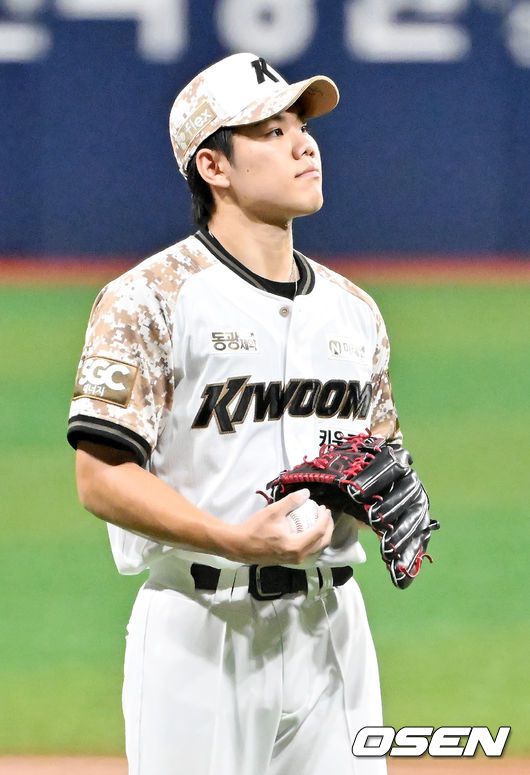 [OSEN=고척, 민경훈 기자] 24일 서울 고척스카이돔에서 ‘2025 신한 SOL Bank KBO리그’ 키움 히어로즈와 KIA 타이거즈의 경기가 열렸다. 키움은 김윤하, KIA는 윤영철을 선발로 내세웠다. 1회초 1사 주자 1,2루 KIA 최형우에게 중월 선취 스리런 홈런을 허용한 키움 선발 김윤하가 아쉬워하고 있다. 2025.06.24 / rumi@osen.co.kr