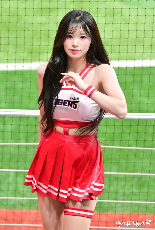 (엑스포츠뉴스 고척, 김한준 기자) 24일 오후 서울 구로구 고척스카이돔에서 열린 '2025 신한 SOL Bank KBO리그' KIA 타이거즈와 키움 히어로즈의 경기, 윤수인 치어리더가 멋진 공연을 선보이고 있다.김한준 기자 kowel@xportsnews.com