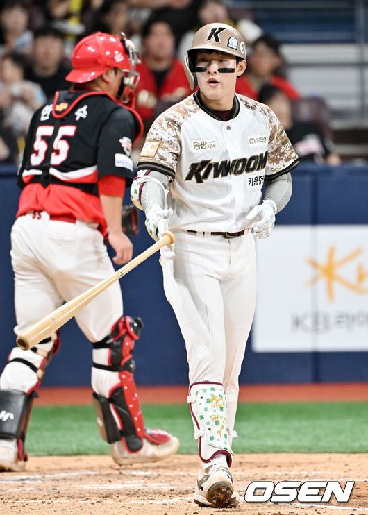 [OSEN=고척, 민경훈 기자] 24일 서울 고척스카이돔에서 ‘2025 신한 SOL Bank KBO리그’ 키움 히어로즈와 KIA 타이거즈의 경기가 열렸다. 키움은 김윤하, KIA는 윤영철을 선발로 내세웠다. 4회말 무사 주자 1,2루 키움 전태현이 타석에서 볼넷을 얻어내며 출루하고 있다. 2025.06.24 / rumi@osen.co.kr