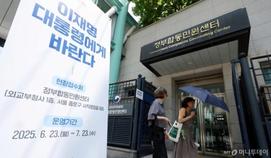 [서울=뉴시스] 추상철 기자 = 23일 오후 서울 종로구 정부합동민원센터 앞에 국정기획위원회 국민 정책제안 프로젝트 현장 접수 안내 배너가 세워져 있다. 국정기획위원회는 내달 23일까지 정부합동민원센터에서 국민 정책제안 프로젝트 현장 접수를 받는다. 2025.06.23. scchoo@newsis.com /사진=추상철 |