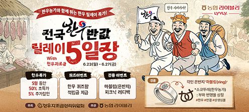 [한국금융신문 이동규 기자] 농협(회장 강호동) 경제지주(축산경제대표이사 안병우)가 운영하는 축산물 전문 온라인 쇼핑몰 농협 라이블리가 6월 27일까지 한우자조금관리위원회와 공동으로 '릴레이 5일장 할인전'을 진행한다.