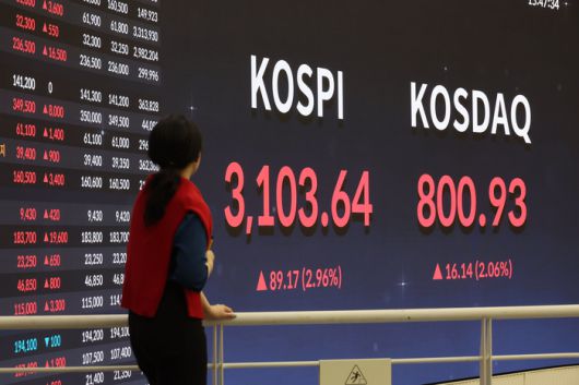 그러나 개인투자자들의 관측과 달리 코스피는 상승 랠리를 보이고 있다. 이날 코스피는 전일 대비 2.96% 상승한 3103.64를 기록했다.