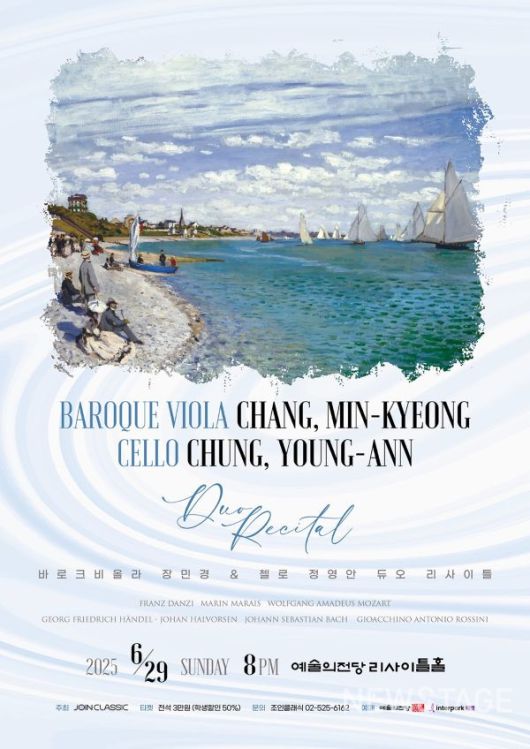 바로크 비올리스트 장민경과 첼리스트 정영안이 오는 29일(일) 저녁 8시 예술의전당 리사이틀홀에서 듀오 리사이틀을 개최한다.