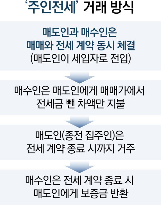 주인전세 거래는 집값 상승기에 집을 팔려는 매도자와 서둘러 구입하려는 매수자의 이해관계가 맞아떨어지면서 나타난다. 세금 문제나 개인 사정으로 집을 팔아야 하는 매도자는 다른 곳으로 이사하지 않고 시세 차익을 거둘 수 있다. ‘급매’처럼 시세보다 싸게 팔지 않아도 된다. 매수자는 매매가에서 전세가를 뺀 차액만 지불하기 때문에 당장의 자금 부담을 덜 수 있다. 주인전세 거래는 일반적인 ‘갭투자’보다 전세 보증금이 높아 더 적은 현금으로도 투자할 수 있고, 새로운 세입자를 구하는 번거로움도 덜 수 있다.