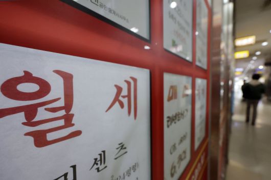 서울의 한 공인중개사사무소에 월세 매물 안내문이 게시돼 있다. 뉴시스 |