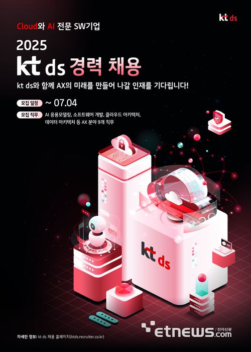 KT그룹의 IT서비스 전문기업 kt ds(대표 이상국)가 AX(AI Transformation) 분야 전문성을 확대하기 위해 외부 인재 채용에 나선다. kt ds는 이번 채용을 통해 세 자릿수의 AX 전문가를 영입할 계획이다.