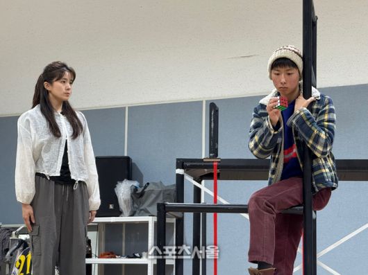 연극 ‘렛미인’ 재연에 합류한 (왼쪽부터) 백승연과 천우진이 24일 연습실 프레스콜에서 주요 장면을 시연하고 있다. 사진 | 표권향 기자 gioia@sportsseoul.com |
