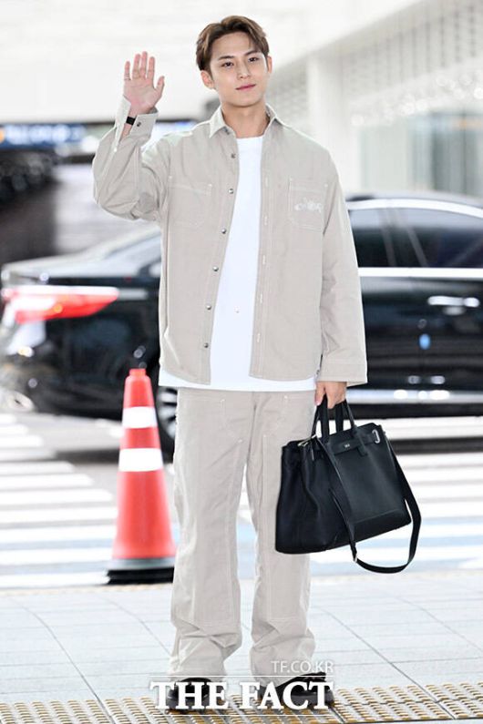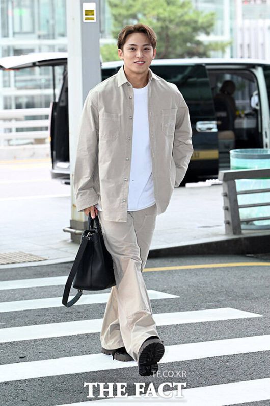 그룹 세븐틴 민규가 25일 오전 해외 일정 참석차 인천국제공항 제2터미널을 통해 프랑스 파리로 출국하며 포즈를 취하고 있다. /인천국제공항=남용희 기자 |