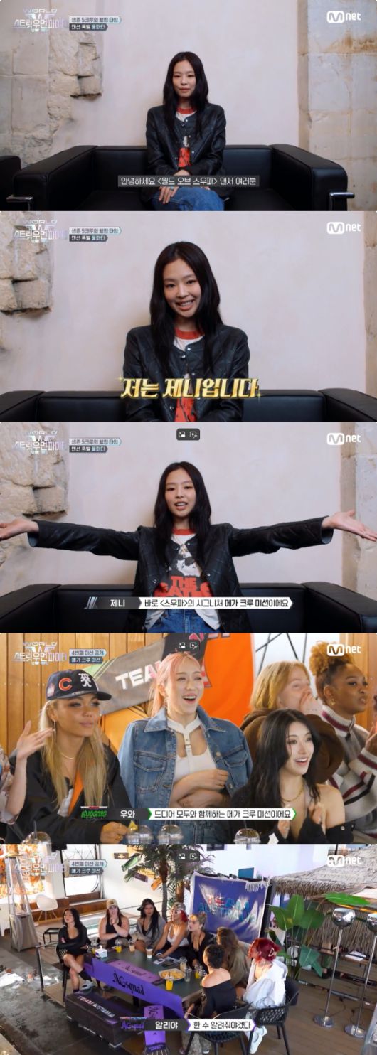24일 방송된 Mnet '월드 오브 스트릿 우먼 파이터'에는 모든 크루들이 한자리에 모여 풀파티를 즐기는 모습이 그려진 가운데, 그룹 블랙핑크 제니가 깜짝 등장해 눈길을 끌었다.