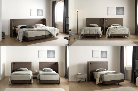 파티션을 가운데 설치하고 침대를 떨어뜨리면 각자의 공간을 존중하는 분리 수면이 가능하며, 파티션을 양끝에 두고 침대를 나란히 붙이면 아메리칸 킹사이즈보다 넓게 활용할 수 있다.