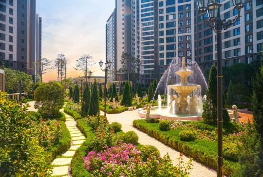 조경은 강남급 고급단지 이상으로 총 100만주 수목에서 나오는 오감을 자극하는 도심 속 리조트 정원으로 조성됐다. 은목서, 장미, 수국 등에서 퍼지는 향기와 국내 최고 7m 높이·12m 길이의 대형 분수, 1.2km 길이의 수변 공간, 다양한 수목과 초화 식재는 물론 에버랜드를 연상시키는 체험 공간까지 마련됐다.