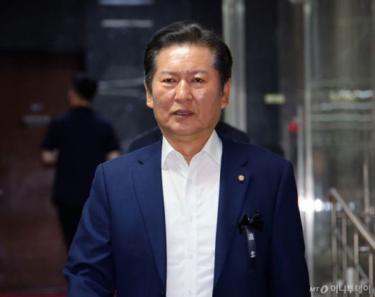 [서울=뉴시스] 김금보 기자 = 더불어민주당 당대표 출마를 선언한 정청래 의원이 24일 서울 여의도 국회에서 열린 의원총회에 참석하고 있다. 2025.06.24.