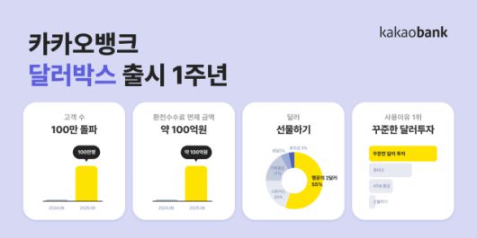 [디지털데일리 박기록기자] 카카오뱅크(대표 윤호영, Daniel)는 자사가 출시한 '달러박스'가 출시 1년 만에 누적 이용자 수 100만 명을 돌파하며 대표 외화 서비스로 자리매김했다고 25일 밝혔다.