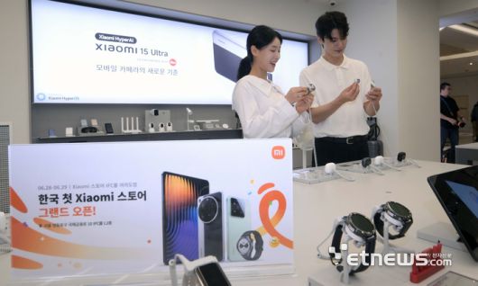샤오미코리아가 국내 첫 공식 오프라인 매장 샤오미스토어를 오픈했다. 25일 서울 여의도 IFC몰 샤오미스토어에서 모델이 샤오미 웨어러블 기기를 살펴보고 있다. 김민수기자 mskim@etnews.com [Copyright © 전자신문. 무단전재-재배포금지]
