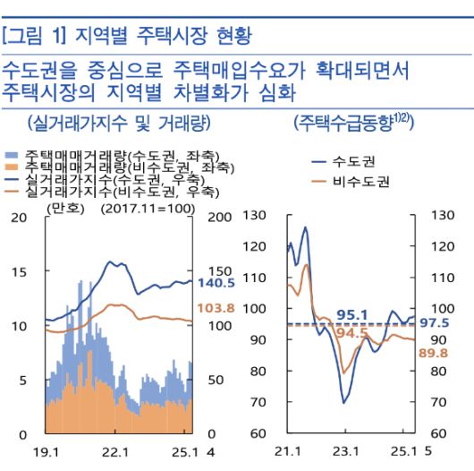 이렇게 상이한 흐름이 생기게 된 것은 금리인하기에 주택 가격 상승 기대가 커지면서 수도권을 중심으로 주택 매입 수요가 확대되고 있기 때문으로 풀이했다. 또한 지역 간 인구이동 및 성장 격차 등 구조적 여건도 지역 간 주택시장의 차별화 요인으로 추정된다.
