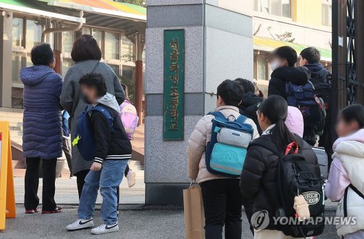 서울 서대문구 북성초에서 학생들이 등교하고 있다. |