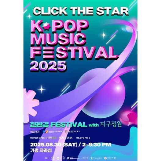 월드케이팝센터는 25일 "오는 8월 30일 가평 자라섬에서 '2025 클릭더스타 케이팝 뮤직 페스티벌'을 개최한다"라고 알렸다.