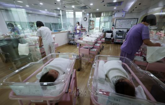 서울 시내 한 산후조리원의 신생아실 모습. 서울신문 DB |